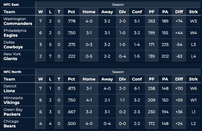 Perri says: Can Cooper Rush pull off a miracle cover against a divisional rival? I’m going to say no. The Eagles have won four straight since their Week 5 bye, ranking top five in both offensive and defensive EPA per play in that span. Dallas has been horrible on both sides of the ball and I expect it to get embarrassed once again at home.