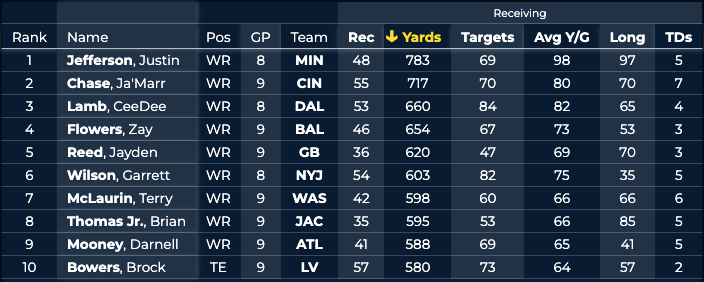 Perri says: The Jaguars have looked frisky lately but are still 2-7 on the season and 3-12 going back to Week 13 of last year. Only five of those losses have been by seven-plus points but I think Brian Flores will dial up enough pressure to rattle Trevor Lawrence. Minnesota leads the league in blitz rate (39.9%) and pressure rate (30.8%).